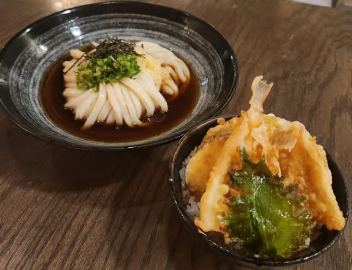 かけ、冷し、カレー、クリームから選べるフルサイズのうどんに天丼が付いて、平日のランチスペシャルは14.95ドル、アヒポケ丼のセットでも17.95ドルと格安です。