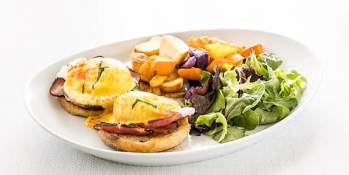 全ての卵料理にはポテト、ミックスグリーン・サラダ、ジュースとコーヒーまたはティーが付きますが、特製コーヒーは除外となります