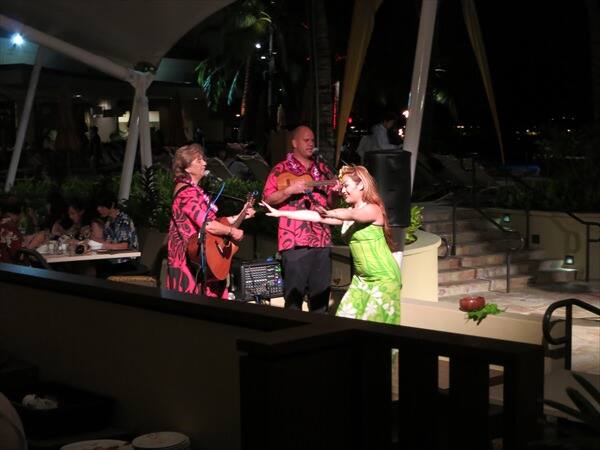 私たちはフラを楽しみましたが、エンターテインメイントは午後8時までおこなわれていますので、ファイヤーダンスや生演奏も楽しめるとのことです。