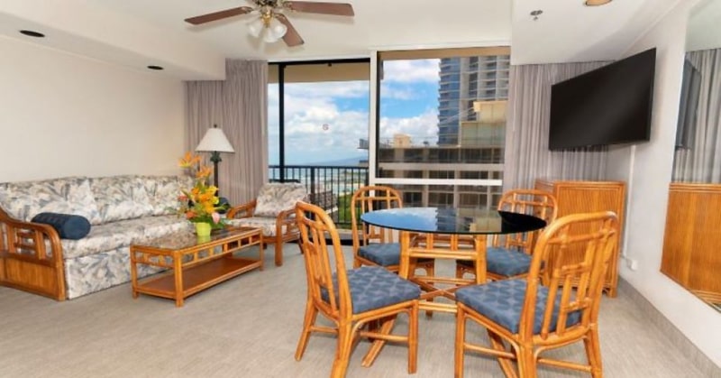 部屋はホテルルームとは比べ物にならない広さで、ゆったりとハワイの滞在を楽しめるコンドミニアムです。