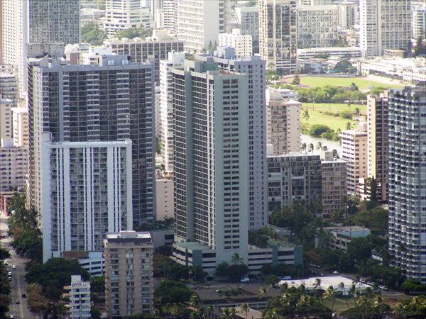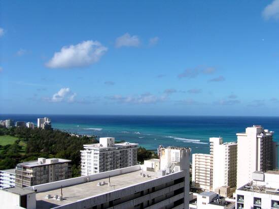 オーシャンビューとはいいましてもこういった景色ですから、カラカウア通りのホテルのような海の景色はのぞめません。
