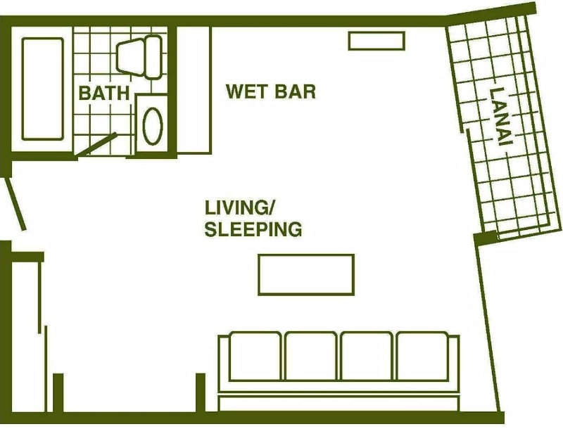16階の部屋は改装されたオヒアスイート・デラックスステューディオ(キチネット付ワンルームタイプ)となります