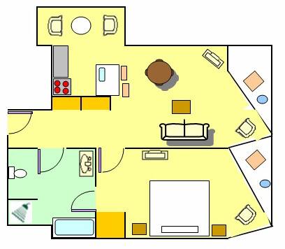 一定期間に暮らすように泊まるといったことがコンセプトの施設ですから、コンドミニアムのような部屋となっています。
