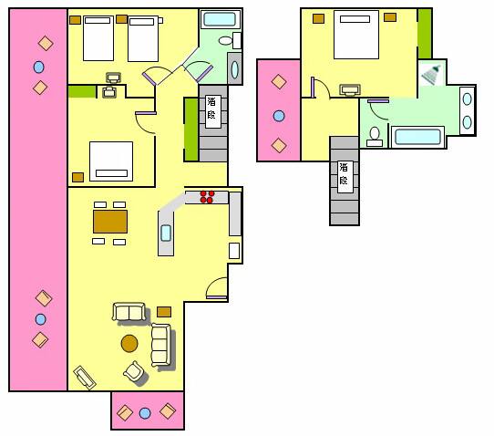 宿泊する部屋はホテルと違い広く、1ベッドルームから3ベッドルームまでありますので、カップルから3世代での利用にまで対応できます。